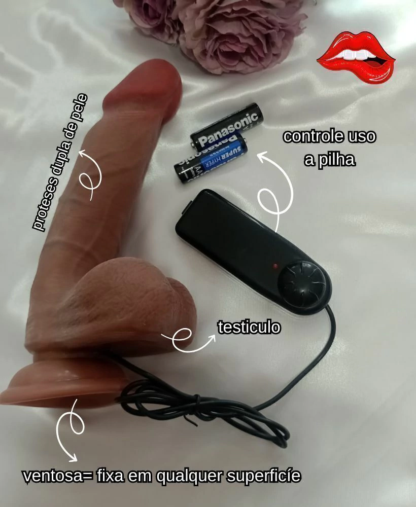 Pênis realístico com vibro, confeccionado em silicone. possui glande definida,